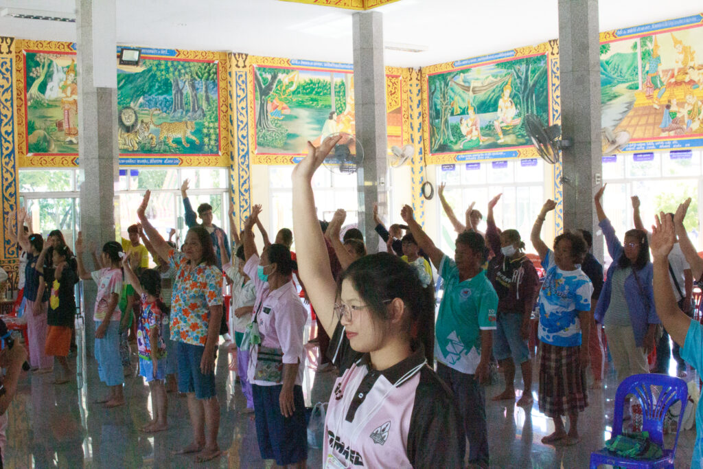 หลังจากบรรยายให้ความรู้และแลกเปลี่ยนความรู้กับทางผู้เข้าร่วม ก็ได้เข้าสู่ช่วงหลักของโครงการนั่นก็คือการออกกำลังกายในแบบต่างๆ นำโดยทีมนักศึกษาคณะเทคนิคการแพทย์ สาขากายภาพบำบัด เริ่มจากการเตรียมร่างกายก่อนออกกำลังกาย (วอร์มอัพ) จากนั้นจะสาธิตการออกกำลังกายในท่าต่างๆ โดยให้ผู้เข้าร่วมรับชมการสาธิตและปฏิบัติท่าทางตามจังหวะเพลง 💃🏻 เมื่อจบการออกกำลังกายจะมีการสาธิตการคูลดาวน์เพื่อลดการบาดเจ็บและปวดเมื่อย