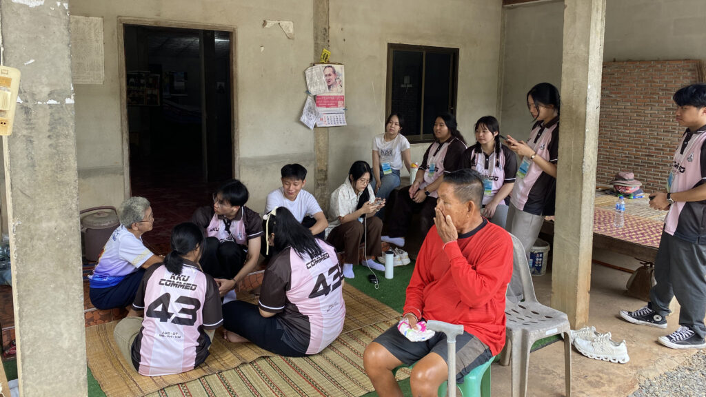 ในวันแรกของการลงพื้นที่ บรรยากาศเป็นไปด้วยความอบอุ่นและเป็นมิตร เต็มไปด้วยความมุ่งมั่นของนักศึกษาทุกคน อีกทั้งชาวบ้านในพื้นที่ก็ให้การต้อนรับอย่างดีเยี่ยม พูดคุยด้วยด้วยความเป็นกันเอง บางครัวเรือนดูแลเราเสมือนสมาชิกในครอบครัว ทำให้การลงพื้นที่ครั้งนี้สร้างความประทับใจเป็นอย่างมาก