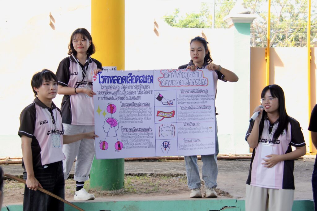 วันที่ 15 พฤศจิกายน พ.ศ.2568 นักศึกษา5คณะสายวิทยาศาสตร์สุขภาพและคณะอาจารย์ เขตที่2 ลงพื้นที่จัดทำโครงการให้ความรู้ต่อชุมชนในหมู่บ้านหนองแสง หมู่2 ตำบลท่ากระเสริม อ.น้ำพอง จ.ขอนแก่น ณ โรงเรียนบ้านหนองแสง