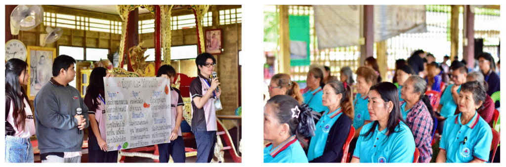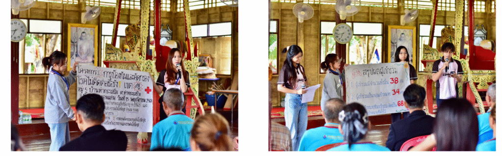 ชาวบ้านในชุมชนต่างให้ความสนใจ รับฟังข้อมูลอย่างตั้งใจ บรรยากาศเต็มไปด้วยความอบอุ่นและความผูกพันของคนในพื้นที่ที่ร่วมสร้างสุขภาพไปพร้อมกับทีมคณะนักศึกษาในโครงการที่ 1 กิจกรรมครั้งนี้จึงไม่ใช่เพียงการรายงานผล แต่เป็นการ “คืนกลับความรู้ ความเข้าใจ และความห่วงใย” ให้แก่ชุมชนอย่างแท้จริง