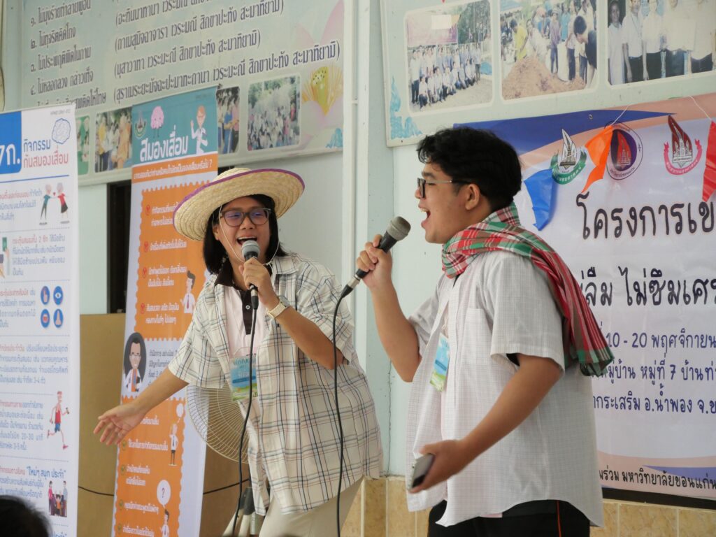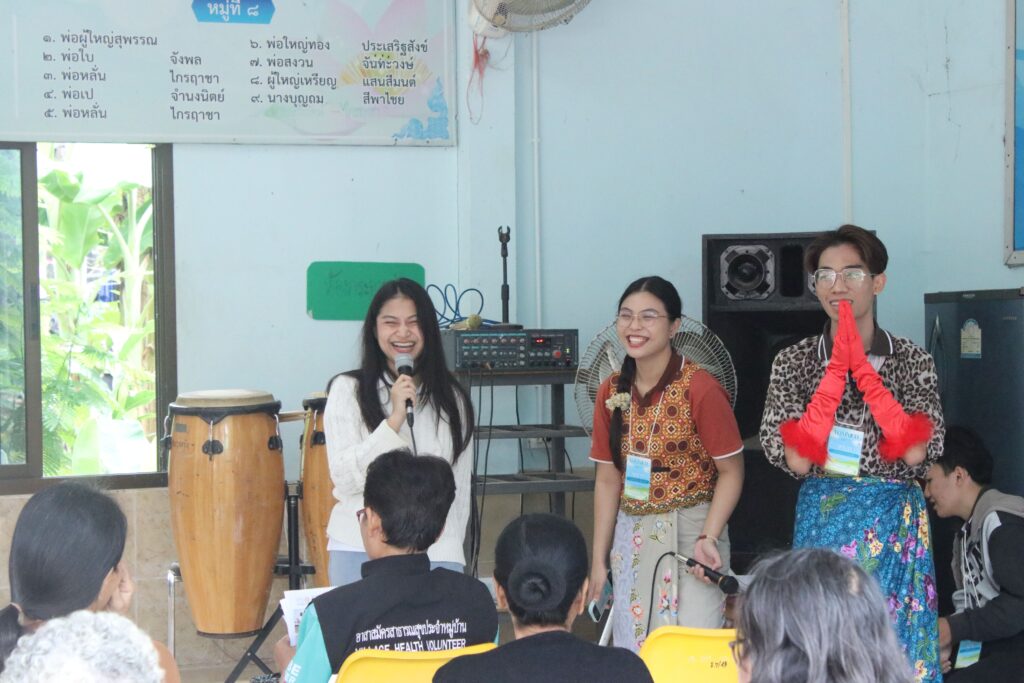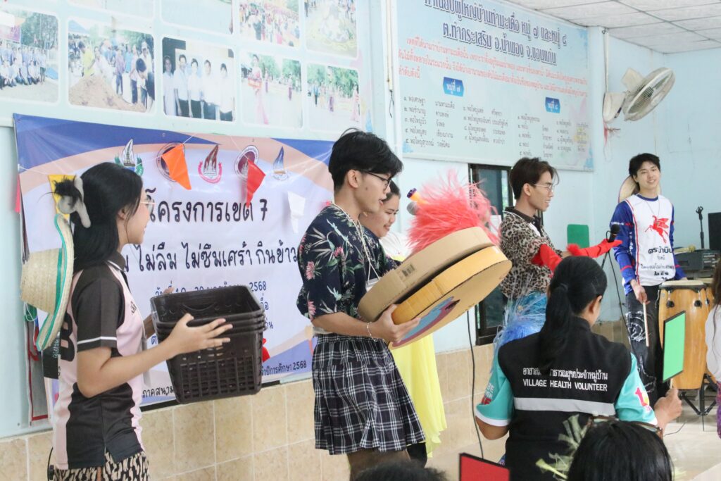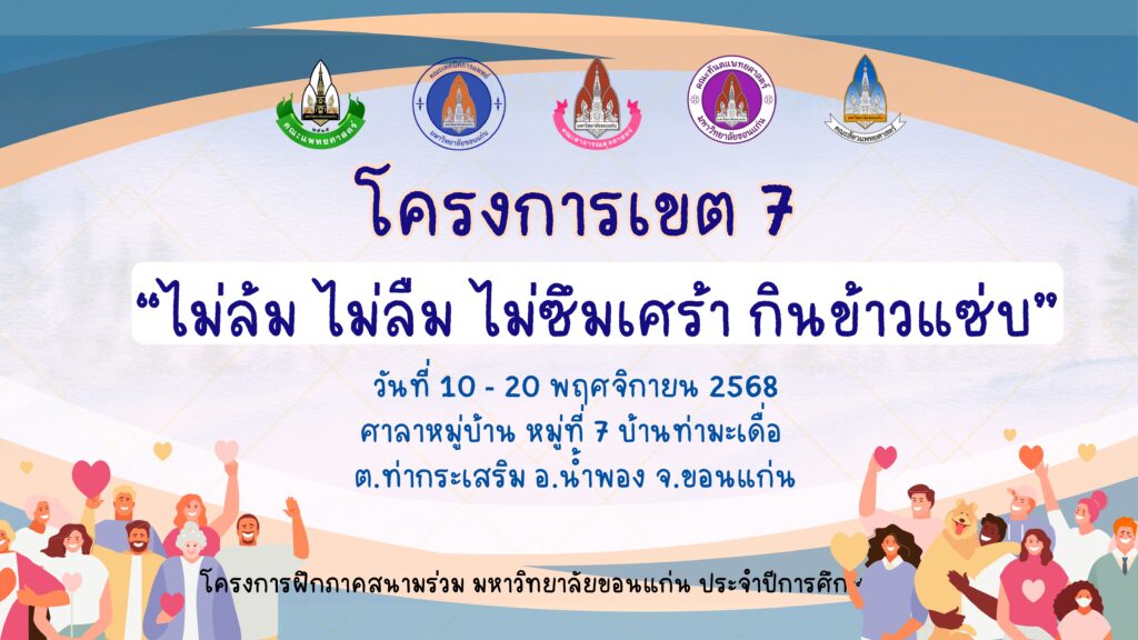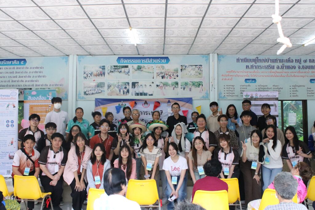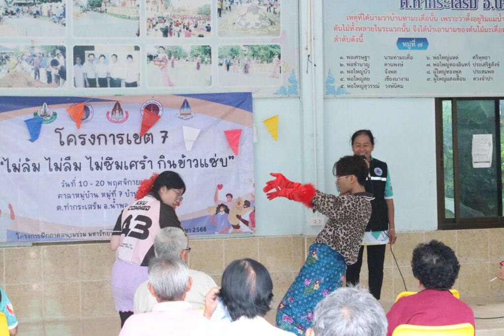 ในวันอังคารที่ 18 พฤศจิกายน 2568 นักศึกษาสายวิทยาศาสตร์สุขภาพทั้ง 5 คณะและคณาจารย์ โครงการ 2 เขตที่ 7 มหาวิทยาลัยขอนแก่น ได้ลงพื้นที่จัดกิจกรรมฝึกอบรมเชิงปฏิบัติการให้ความรู้แก่ชุมชนภายใต้ชื่อโครงการ “ไม่ล้ม ไม่ลืม ไม่ซึมเศร้า กินข้าวแซ่บ”
